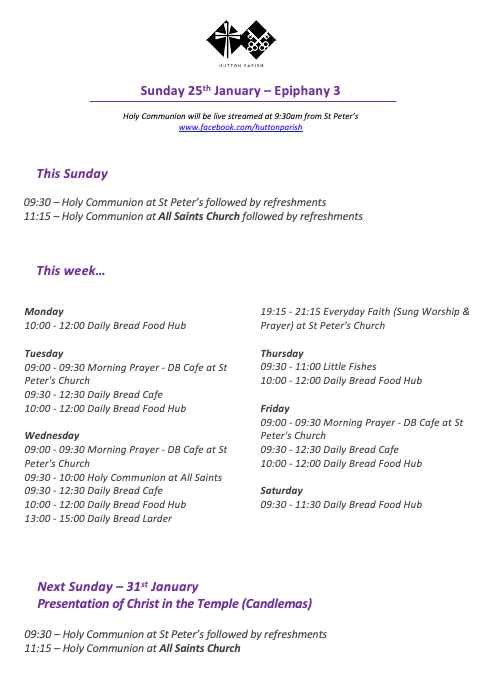 25th January 2026 - Epiphany 3